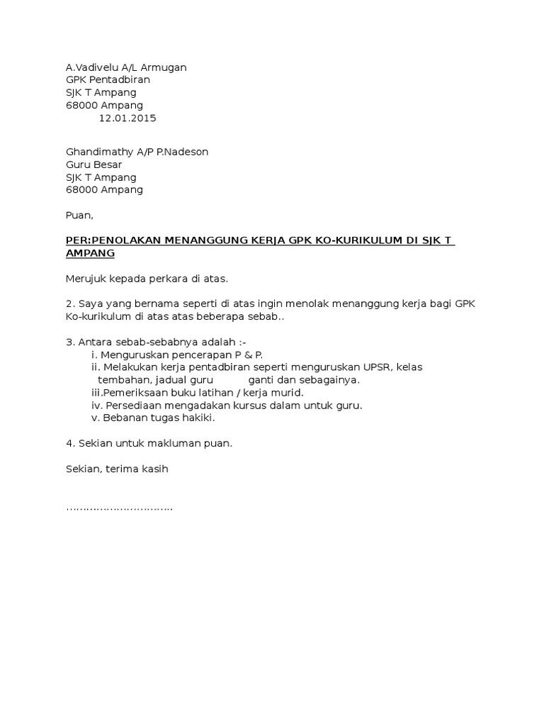 . Contoh surat rasmi arahan pertukaran tempat kerja liga mx p cute766. Berikan alasan terbaik ringkas. Contoh Surat Tolak Tawaran Kerja - Contoh Surat Penolakan Tawaran Kerja Bahasa Inggris Surat Lamaran Kerja Desain Contoh Surat P3yexbnp6w.